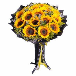 A delightful dozen sunflowers beautifully arranged in our signature white bucket, radiating warmth and charm.