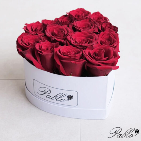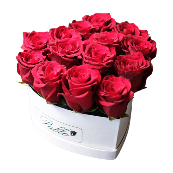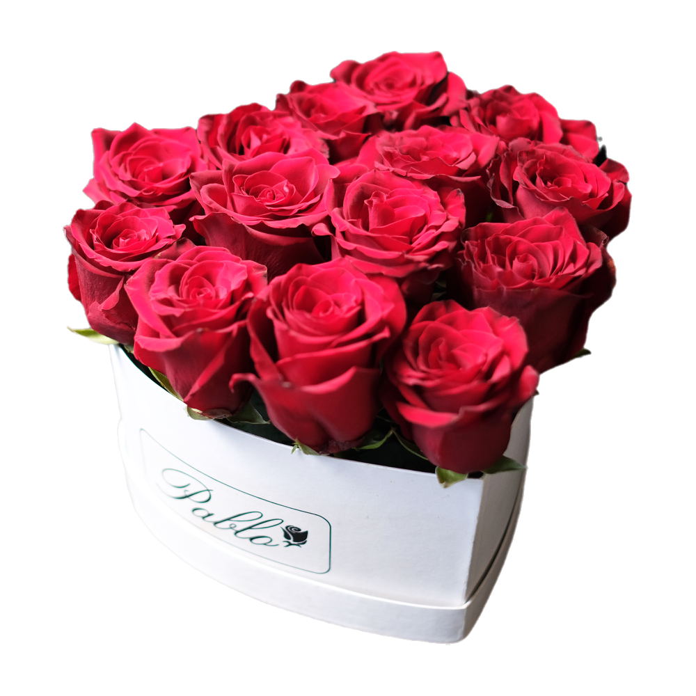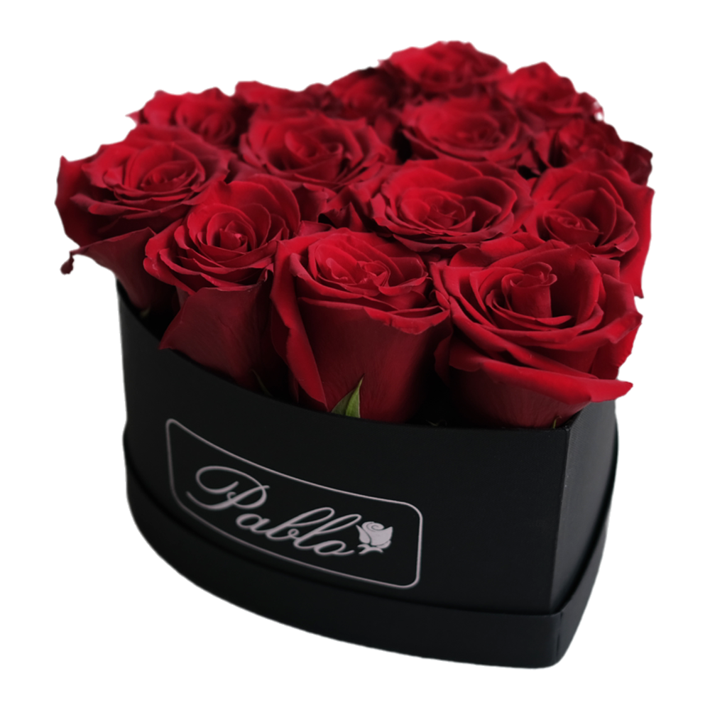 Say it from the heart with 14 fresh Ecuadorian roses arranged beautifully in our signature heart-shaped box, very romantic.
