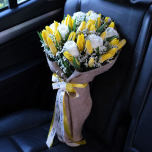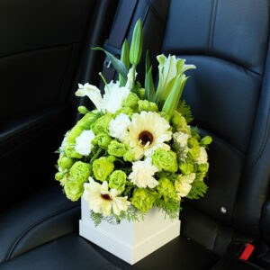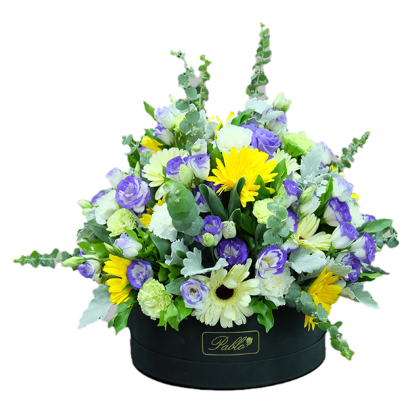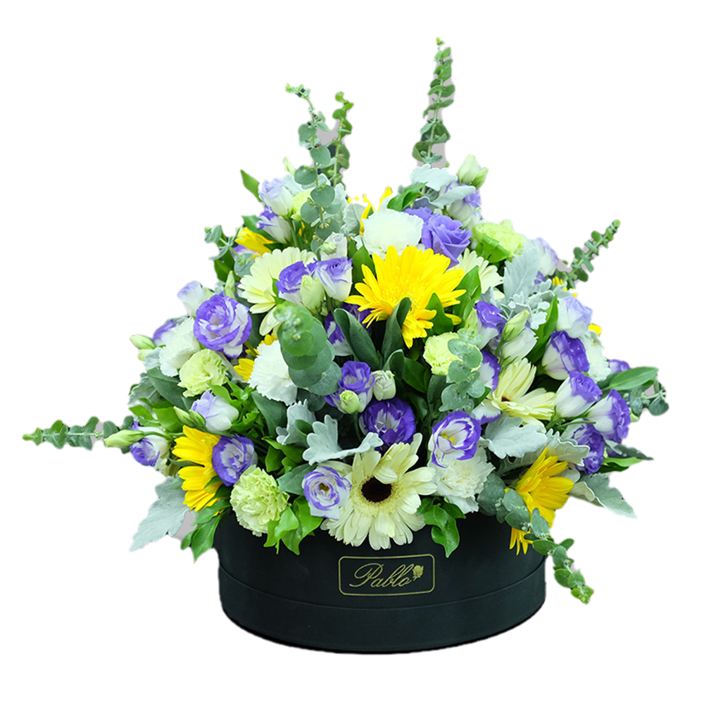 Heather is an elegant blend of lisianthus, gerberas, carnations, and eucalyptus all beautifully arranged in our signature jumbo bucket. Lush, vibrant, and full of texture, it’s a statement piece made to brighten any space