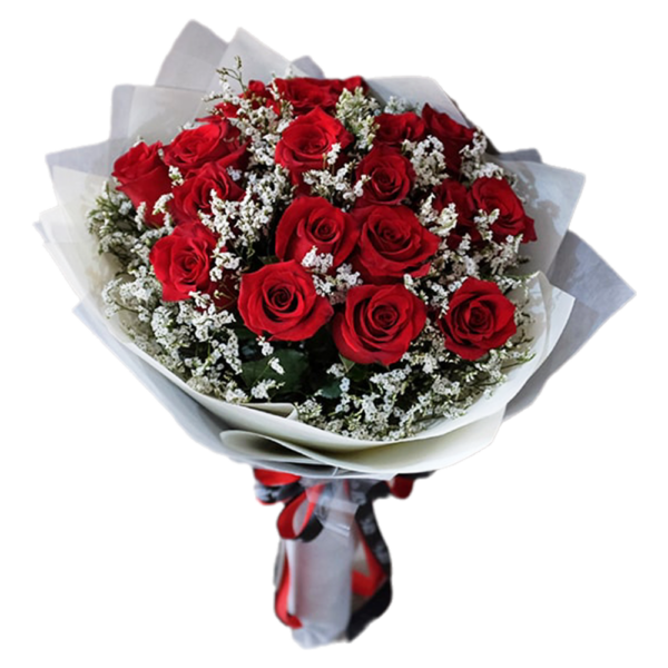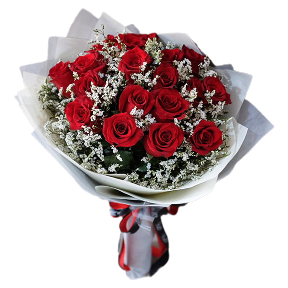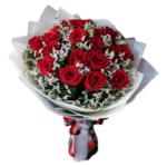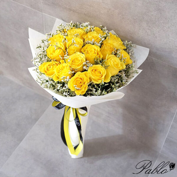 Round bouquet of 18 Ecuadorian roses styled with Pablo’s signature touch. Bold, confident, and ready for love.