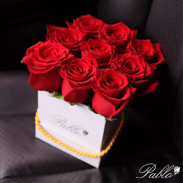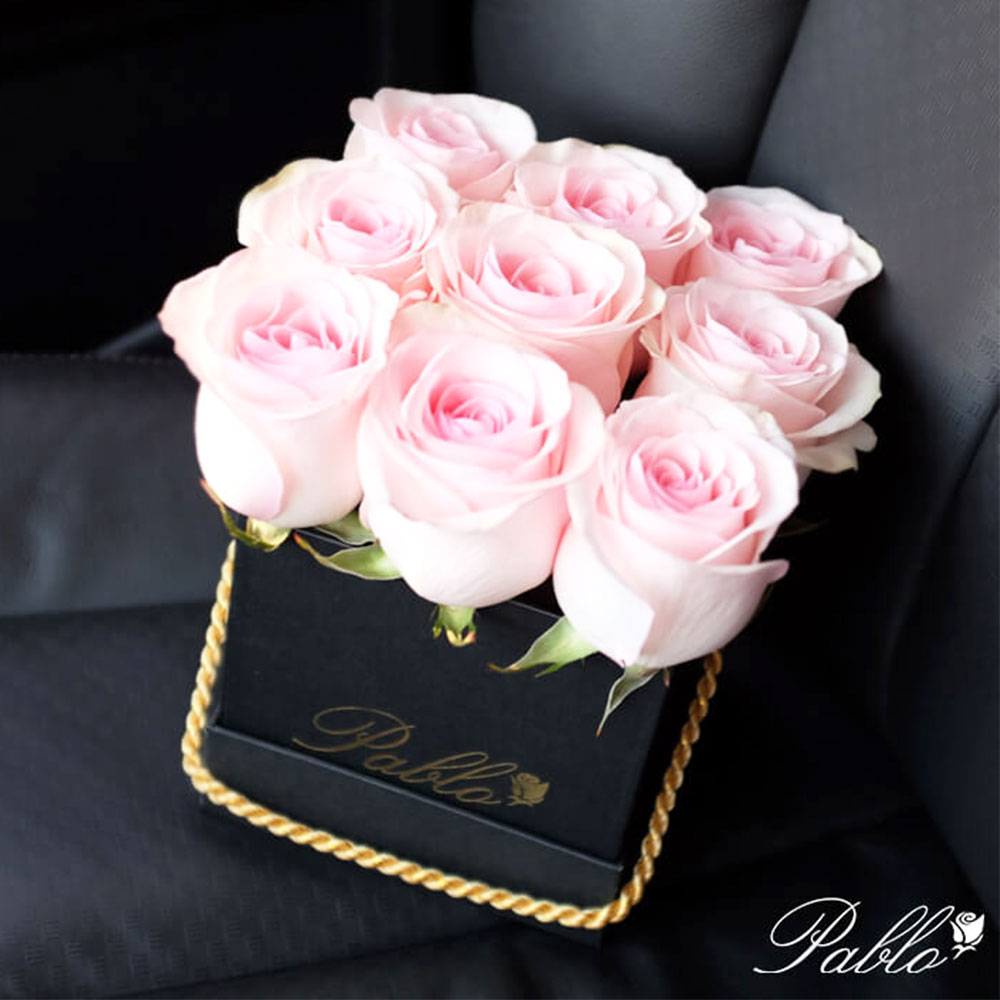 A soft and charming bouquet of 9 Ecuadorian roses, neatly arranged in our signature petite cube. Sweet, simple in awe.