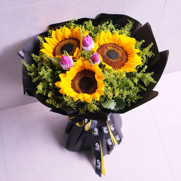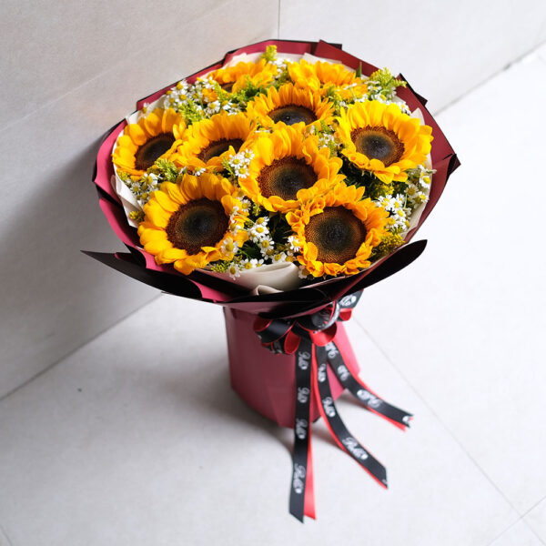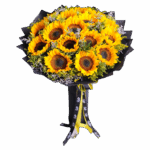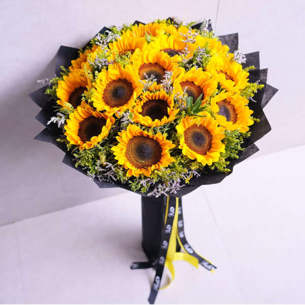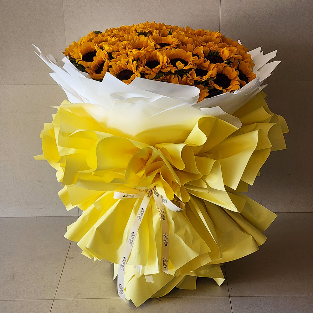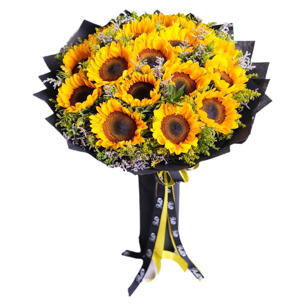 Brighten her day with a radiant bouquet of 3 to 50 sunflowers, arranged the Pablo way. Each round bouquet comes with your choice of wrapper and fillers like baby’s breath, eucalyptus, or asters. Simple, cheerful, and full of warmth — perfect for any moment that calls for sunshine.