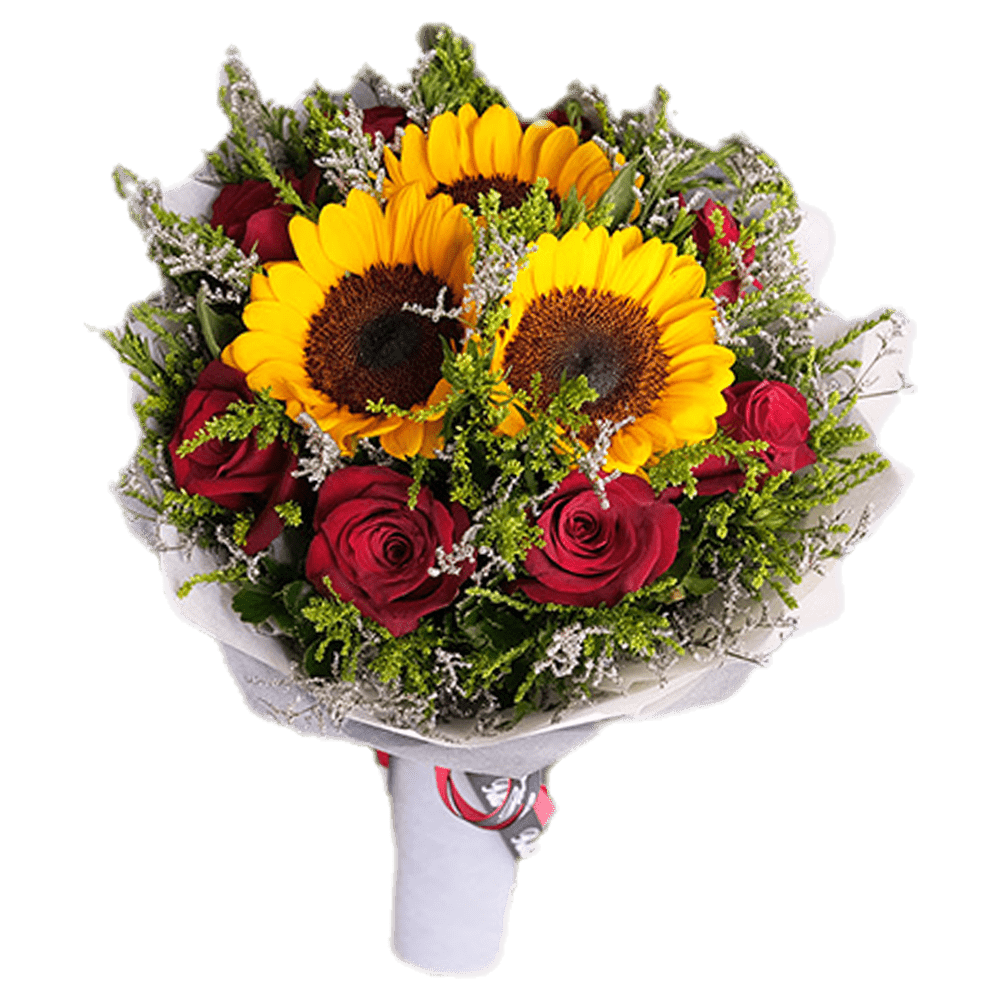 8 Ecuadorian roses with 3 sunflowers at the center — a perfect mix of charm and warmth in our signature bucket.